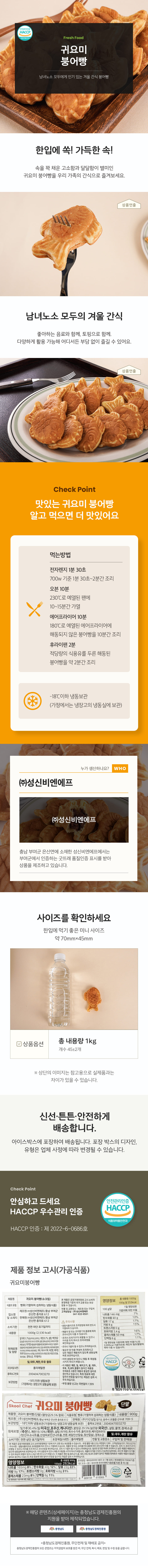 | 포장단위별 내용물의 용량(중량), 수량 | 1kg(붕어빵 1개당 22g~25g, 총 40~45개 구성) |