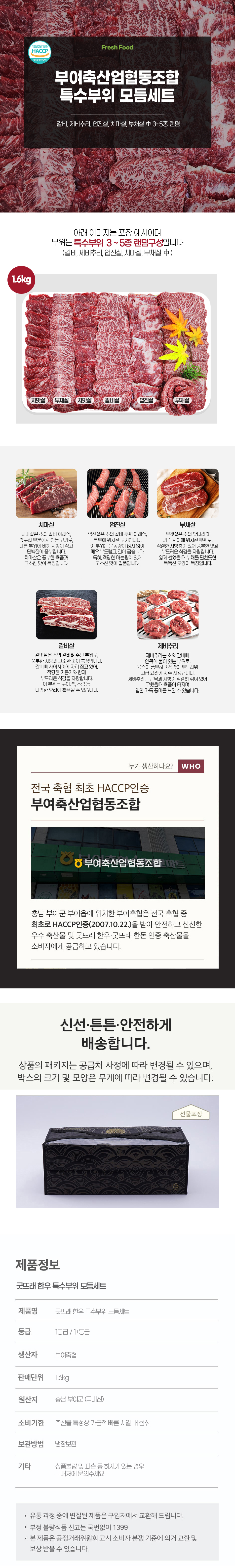 굿뜨래 한우 특수부위모듬세트1.6kg 1등급 부직포포장