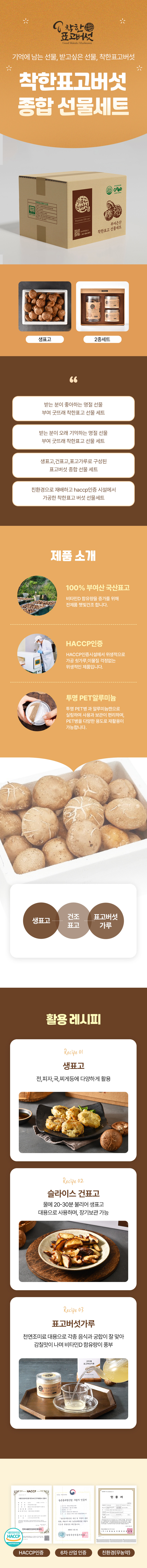 | 상품구성 | 생표고버섯1kg+2종세트(통슬라이스50g,표고버섯가루50gx2통) |